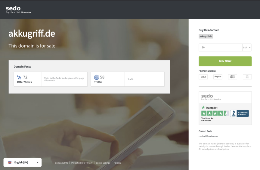 And we make it even more worthwhile to set up a Sales Landing Page by offering a commision discount! To achieve this savings, simply list your domain with a Buy Now price AND use one of our Sales Landing Page layouts. As a result, the commission is only 10% instead of 15% if the buyer purchases the domain through our Sedo platform.