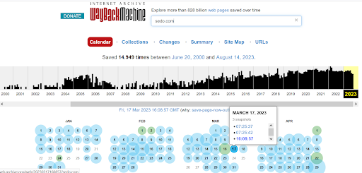 Spam risk: If an aged domain has been abused by spammers in the past or has violated search engine guidelines, this can lead to a negative impact on the domain's reputation. Search engines can impose penalties on domains that can negatively impact ranking and visibility. If a domain has received this stamp, also known as a “burned domain”, it’s difficult to get rid of it. As a rule, spammers tend to use newer or new registered domains for fakeshops, so whatever happened in a domain's history should always be checked before purchasing. Archive.org's Wayback Machine can help with this: It’s like a digital time machine for domains and provides snapshots of the website going back to its launch. This way, you find out the age and also gain insight into the content that could be found under the domain.