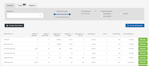 Would you like to look for special bargains first? In that case it's worth visiting our Expiring Domain Auctions. All domains have a starting bid already at $79. There are various filters including the domain age.